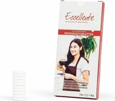 Inhoud: 10 Eccellente reinigingstabletten, á 1,6 gram voor 10 reinigingsbeurten