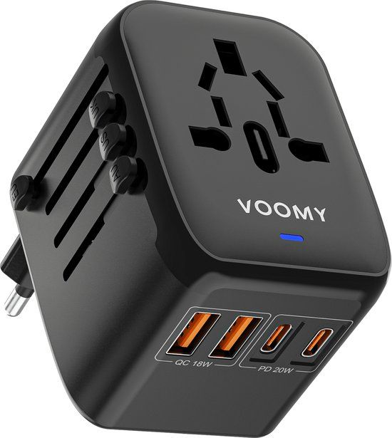 De Voomy Travel Y26 Universele wereldstekker is dé reisstekker die je overal ter wereld kunt gebruiken. Met compatibiliteit in 170+ landen, 20W of 18W snelladen, en 4 USB-poorten, is dit de perfecte oplossing voor al jouw apparaten. Compact, lichtgewicht en krachtig: de ultieme reispartner!