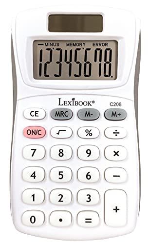 Lexibook 8 Digit Pocket Calculator - Basic and Memory Function - White/Gray - C208