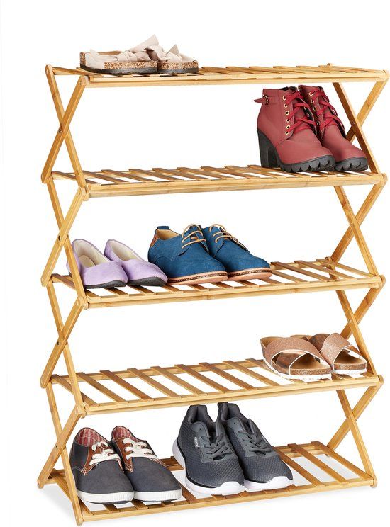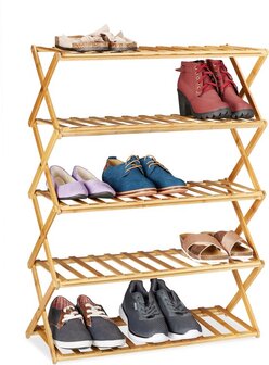 Merkloos Relaxdays Schoenenrek - 5 Etages - Bamboe - 15 Paar - Lichtbruin - Rekken voor schoenen