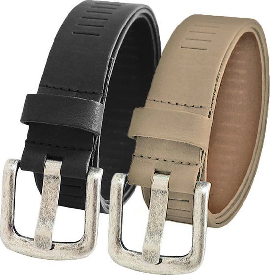 Landley Leren Geperforeerde Riemen Voordeelset - 2 Riemen - Zwart & Taupe - 4 cm Breed - 95 cm - Unisex