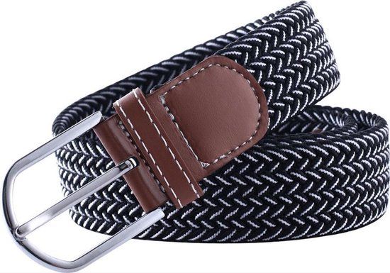Elastische Geweven Riem - Gevlochten Riem - Rekbaar - Zwart/Wit - 105 cm - van Heble® - Riemen