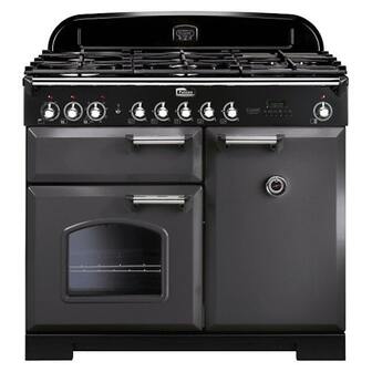 Vrijstaand fornuis gas/elektro Classic Deluxe 100 met 5 gasbranders inclusief wokbrander, gietijzeren pannendragers, geintegreerde vonkontsteking, thermische beveiliging, multifunctionele oven links met 8 functies, inhoud 73 liter, hetelucht oven rechts m