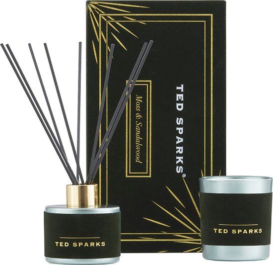 Ted Sparks Velvet Collection Gift Box - Moss & Sandalwood - Geurkaars & Geurstokjes Diffuser - Set van 2