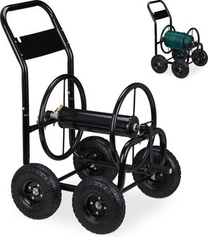 Relaxdays Slangenwagen - Metaal - Zwart - 75 m - Tuinslanghouder op Wielen - Rijden plateaus voor toestellen