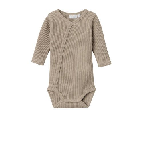 Deze kids romper is van het merk NAME IT BABY. Het model heeft lange mouwen, een ronde hals en is voorzien van een drukknoopsluiting. De romper is gemaakt van biologisch katoen.