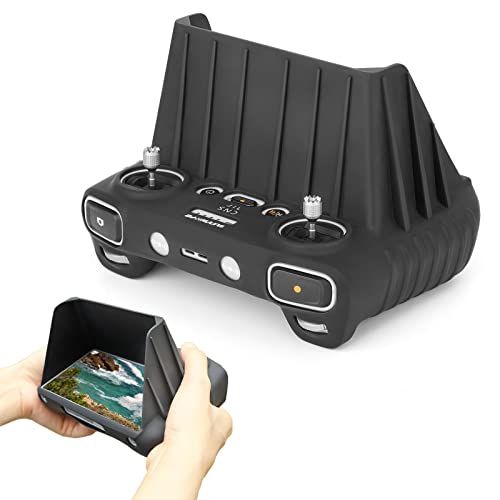 MotuTech siliconen beschermhoes voor DJI Mini 3 Pro DJI RC afstandsbediening met display, krasbestendig, zwart met zonneklep