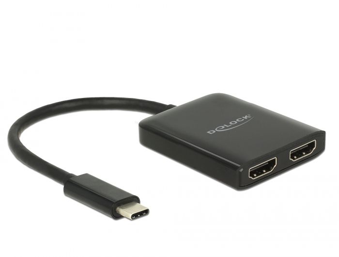 This splitter by Delock is suitable for the connection of two HDMI monitors to a computer with USB-C interface and Displayport alternate mode support. Two monitors can be operated simultaneously at the outputs.
