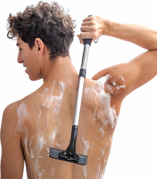 Dit scheerapparaat voor rug en lichaam met uitschuifbare handgreep zorgt voor een volledige scheerbeurt met meer comfort, snelheid en veiligheid. Ideaal voor nat of droog scheren. Met afneembaar scheerkop en hanger. Inclusief 9 universele mesjes.