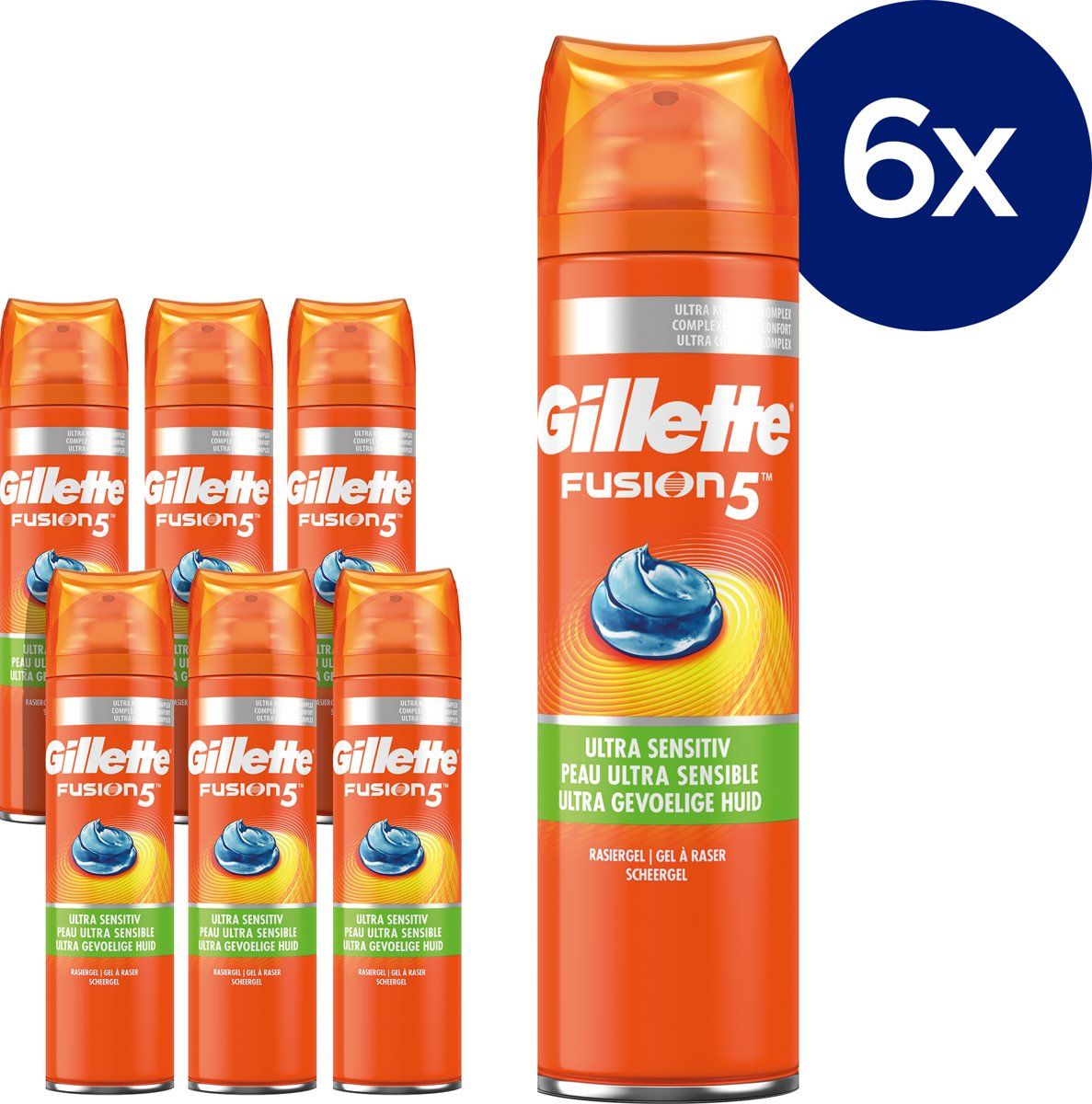 Gillette Fusion5 Ultra Sensitive Scheergel - Voordeelverpakking 6x200ml - Scheercrèmes