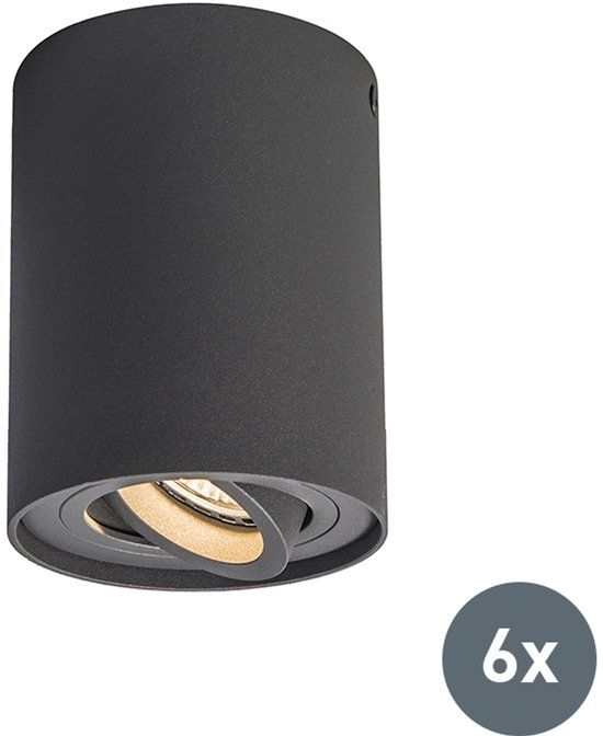 QAZQA Rondoo Up - 6-Pack - Modern Ceiling Spot - Dark Grey - Ø 9.5 cm - Schijnwerpers en spotlights