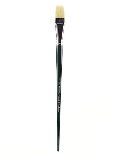 Het Winsor & Newton olieverfpenseel (nummer 12) heeft een platte penseelpunt met lange haren. De kwast is geschikt voor schilderen met olieverf, maar is ook te gebruiken voor acrylverf. De lange, platte borstelharen zijn ideaal voor het mengen van kleuren, het toepassen van glaceertechnieken en het bedekken van grote oppervlakken. De punt, gemaakt van varkenshaar, is extra sterk, veerkrachtig en flexibel. - Winsor & Newton Winton olieverfpenseel plat (nummer 12)