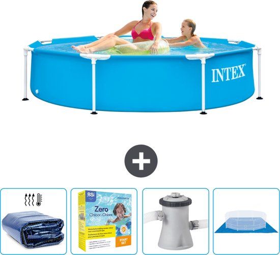 Intex Rond Frame Zwembad - 244 x 51 cm - Blauw - Inclusief Solarzeil - Onderhoudspakket - Zwembadfilterpomp - Grondzeil