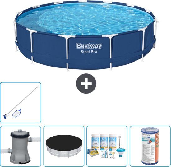 Bestway Steel Pro Rond Zwembad - 396 x 84 cm - Blauw - Familiebad - Inclusief Pomp, Afdekzeil & Onderhoudspakket - Schommel- en speelsets