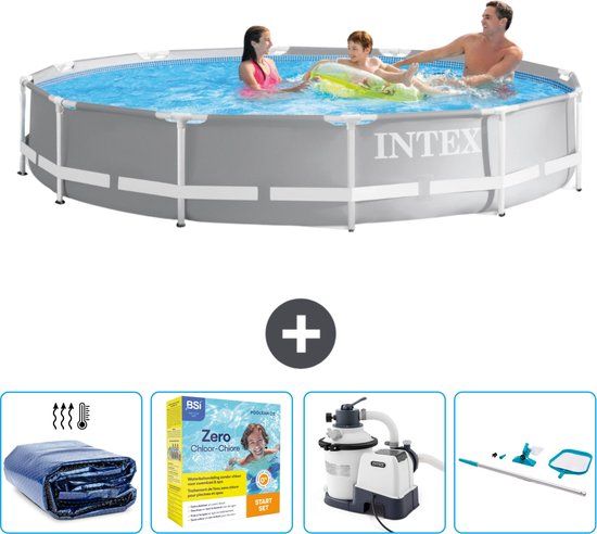 Intex Prism Frame Zwembad - Rond - 366 cm - Grijs - Compleet met accessoires