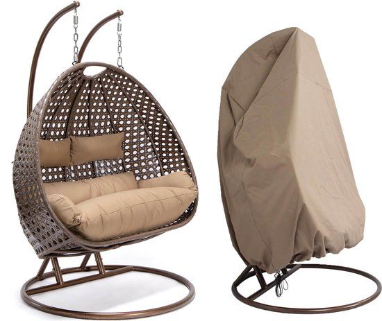 Hangstoel Polyrattan TWIN - Bruin - Met regenhoes + kussens - Weerbestendig - Schommels
