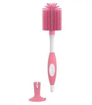 Deze handige flessenborstel is van het merk Dr. Brown's en is voorzien van twee verschillende borstels. De kleine borstel is ideaal voor het reinigen van de speen, bodem en lastige hoekjes van de babyfles. De grote borstel reinigt de body van de fles. De flessenborstel is gemaakt van siliconen en is vaatwasserbestendig.