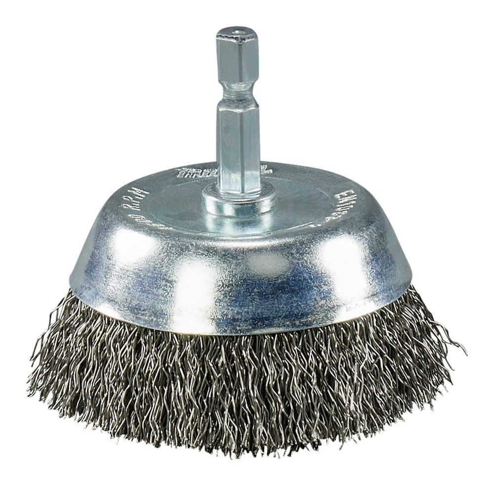 Makita komborstel 65mm met 1/4" vorm E aansluiting. Deze komborstel heeft geplooid RVS draad en is uitstekend geschikt voor het reinigen en verwijderen van verf, roest, aanslag en schilfers, of voor het ontbramen van RVS en staal. Ook geschikt voor het str
