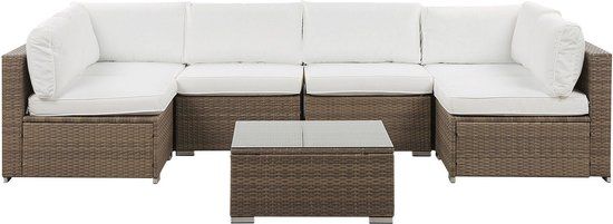 Beliani BELVEDERE - 6-Persoons Loungeset - Bruin - PE Rotan - Hoekbank met Hocker