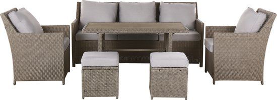 Coco Nathan/Rimini 75 cm 5-persoons Wicker Stoel Loungeset - Taupe-naturel-bruin