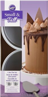Ben je van plan om een spectaculaire taart te maken voor een kleine selectie vrienden of familie? Dan is deze cake pan set van Wilton perfect. Deze set bestaat uit twee bakvormen met een doorsnede van 15cm die perfect is om een 10 cm hoge layered taart te maken!
