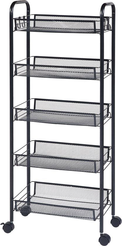 Keukentrolley Tromsø - 5 manden - 103x44x26 cm - Zwart - Sets voor bakproducten
