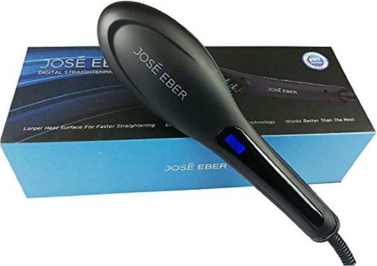 Een stijlborstel dat het haar in een handomdraai glad, glanzend en zacht maakt, geschikt voor alle haartype. De José Eber Digital Straightening Brush V2 is een borstel met digitale hittebedieningen. De borstel heeft een lichtgewicht ontwerp en een zachte afwerking voor een moeiteloze en elegante stylingervaring. De Keramische verwarmingskern geeft een gelijkmatige warmteverdeling en een snelle hersteltijd. De anti-statische keramische borstelharen voegen een luxueuze glans toe en verminderen het kroes en vliegend haar aanzienlijk. De borstel heeft een verstelbare temperatuur. De digitale warmtecontrole zorgt voor de precieze warmte-instelling voor het haar. Belangrijkste kenmerken: * Stijlborstel met keramische borstelharen * Lichtgewicht ontwerp * Digitale hittebedieningen * Zachte afwerking