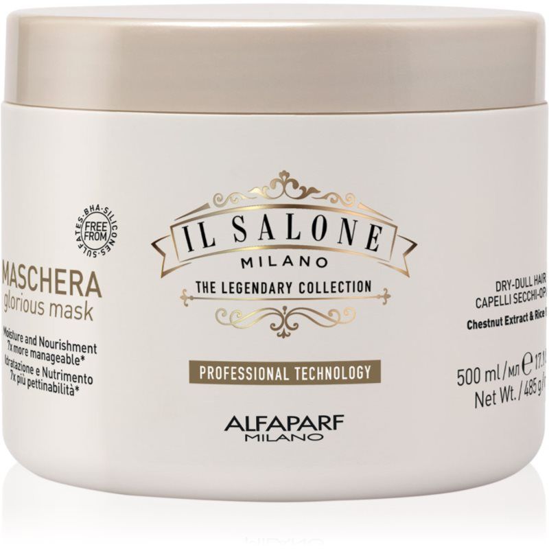 Alfaparf Milano Il Salone Milano Glorious, 500 ml, Haarmasker voor Vrouwen , Het haarmasker Alfaparf Milano Il Salone Milano Glorious is een onmisbare stap in het ritueel van de haarverzorging. Gun het haar een moment van regeneratie en het zal je belonen met vitaliteit en schoonheid. Kenmerken: hydrateert intensief regenereert het haar over de gehele lengte het haar voelt zacht aan werkt in de diepte van de haarvezel Hoe te gebruiken: Aanbrengen op vochtig, met shampoo gewassen haar. Laat even inwerken volgens de tijd vermeld op de verpakking en spoel daarna grondig uit.