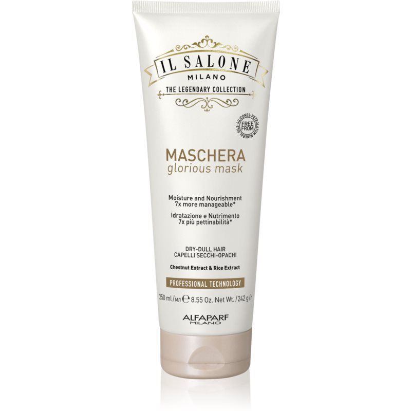 Alfaparf Milano Il Salone Milano Glorious, 250 ml, Haarmasker voor Vrouwen , Het haarmasker Alfaparf Milano Il Salone Milano Glorious is een onmisbare stap in het ritueel van de haarverzorging. Gun het haar een moment van regeneratie en het zal je belonen met vitaliteit en schoonheid. Kenmerken: hydrateert intensief regenereert het haar over de gehele lengte het haar voelt zacht aan werkt in de diepte van de haarvezel Hoe te gebruiken: Aanbrengen op vochtig, met shampoo gewassen haar. Laat even inwerken volgens de tijd vermeld op de verpakking en spoel daarna grondig uit.