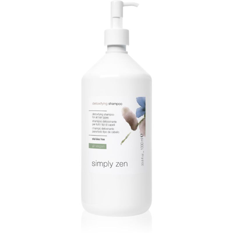Simply Zen Detoxifying, 1000 ml, Shampoos voor Vrouwen , De shampoo Simply Zen Detoxifying reinigt effectief de hoofdhuid, reinigt grondig het haar en geeft het de natuurlijke schoonheid terug. Kenmerken: wast het haar en reinigt de hoofdhuid regenereert en voedt het haar voegt glans en volume toe kalmeert de hoofdhuid Ingrediënten: veganistisch product Hoe te gebruiken: Breng een redelijke hoeveelheid shampoo aan op je natte haar. Creëer schuim en spoel goed af. Herhaal indien nodig.