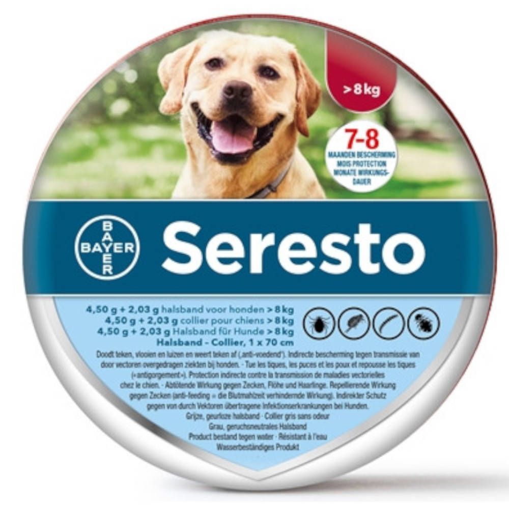 Seresto Halsband 1.25g + 0.56 g Hond > 8kg - 1 stuk - Shampoo's tegen vlooien en teken