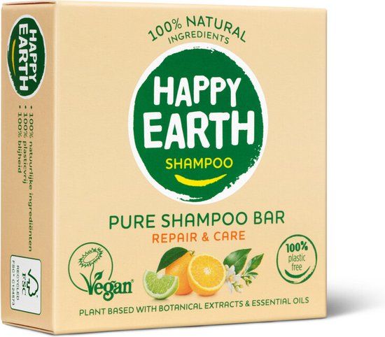 Een shampoo bar is niet alleen heel handig in het gebruik, maar ook een super duurzaam alternatief voor shampoo in flessen! De bars van Happy Earth bevatten alleen 100% natuurlijke ingrediënten die zijn gecertificeerd door COSMOS. Daarnaast bevat de shampoo 0% SLS/SLES en is deze zeepvrij, zodat je zeker weet dat je geen schadelijke producten aanbrengt op je haar. Deze shampoo is speciaal ontwikkeld voor droog en beschadigd haar. De bar verzorgt en herstelt het haar met sheaboter en jojoba-olie. De shampoo heeft een heerlijk natuurlijk parfum met een combinatie van sinaasappel en limoen. Na gebruik van de shampoo zijn je haren zacht, makkelijk doorkambaar en ruiken heerlijk! Dit product is, net als alle andere producten van Happy Earth, gecertificeerd vegan en microplasticvrij. De shampoo bar is zero waste en 100% plasticvrij. Daarnaast is het gebruik van een bar een stuk duurzamer in het gebruik: 1 bar = 3x 200ml flessen shampoo!