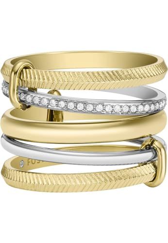 Fossil Prestack Damesring Harlow tweekleurig of goudkleurig roestvrij staal, Roestvrij staal, Zirkonia