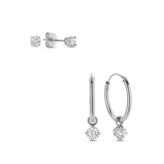 Silventi Zilveren Oorbellen Set - Zirkonia - Wit - 925 Zilver - Sieradensets