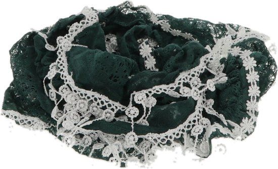 Behave accessoires - Smalle sjaal - Groen - Gehaakt met kanten bloemetjes - Dames