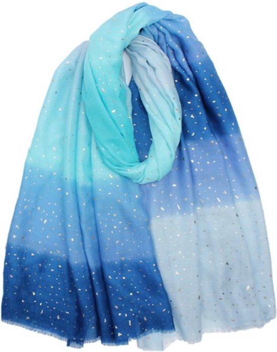 Comfortabele lange dunne sjaal met kleurverloop print en gouden accenten