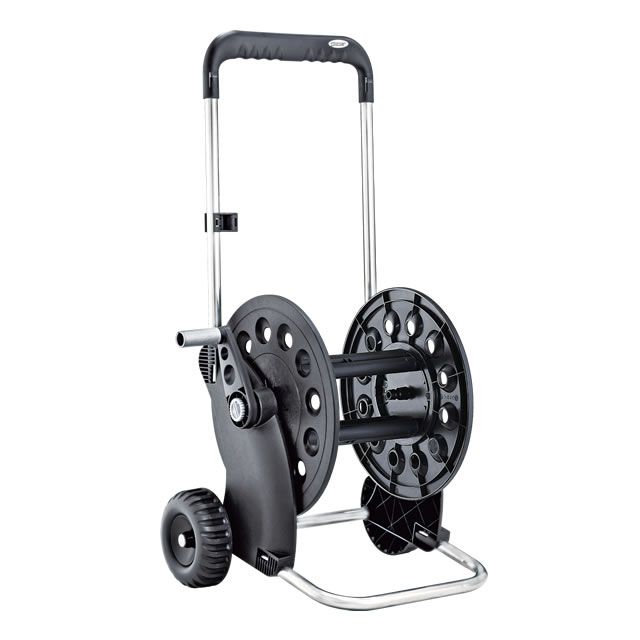 Practicality and ease of use are the "key words" describing this sturdy hose reel cart, easy to assemble and convenient to use. Made in heavy duty plastic materials, it comes in a compact case that is easy to transport and assembles quickly without tools, thanks to the practical flange and strengthened drum assembly system. The ergonomic handle guarantees maximum comfort during use. \n\nComes disassembled in a kit, for rapid, easy assembly without tools. Ergonomic plastic handle. Sturdy, lightweight rust-proof aluminium frame. New cross sections without sharp edges, with tubular strengthening structure. Reel drum turns smoothly on nylon bearings. Contoured, partly enclosed wheels for movement between even the tighest spaces. Compact packaging to facilitate transport, storage and display in retail outlets.\n\n- shock-proof and weather resistant\n- smooth winding\n- ergonomic design\n- compatible with 1/2" and 5/8" hoses