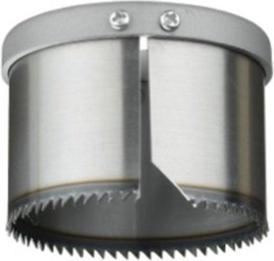 Tungsten steel holesaw, sheet steel arbor, hardened tungsten steel teeth, screwed tightly to the arbor, fine tolerances, for wood, laminated boards, hardwood, blockboard, plasterboard, lightweight building materials, plastics and copper, for installing downlighters, sockets, junction boxes and water pipes.
