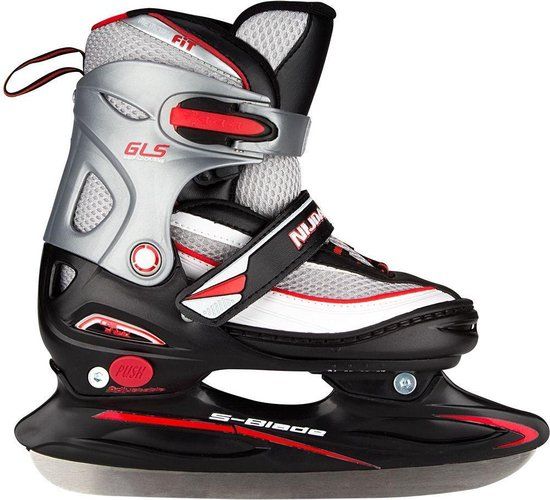 Nijdam IJshockeyschaats - Verstelbaar - Zwart/Zilver - Maat 30-33 - Snelheidsschaatsen