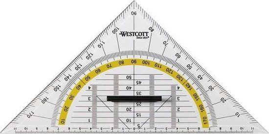 Westcott Geodriehoek - 22cm - Transparant - Met Greep - Snelheidswinkelhaken