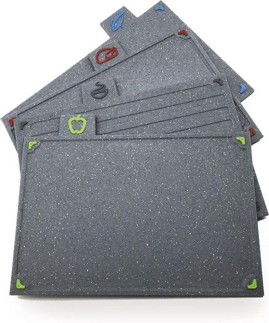 Maestro Set van 4 snijplanken in graniet met houder - MR1787G - Snijplanken