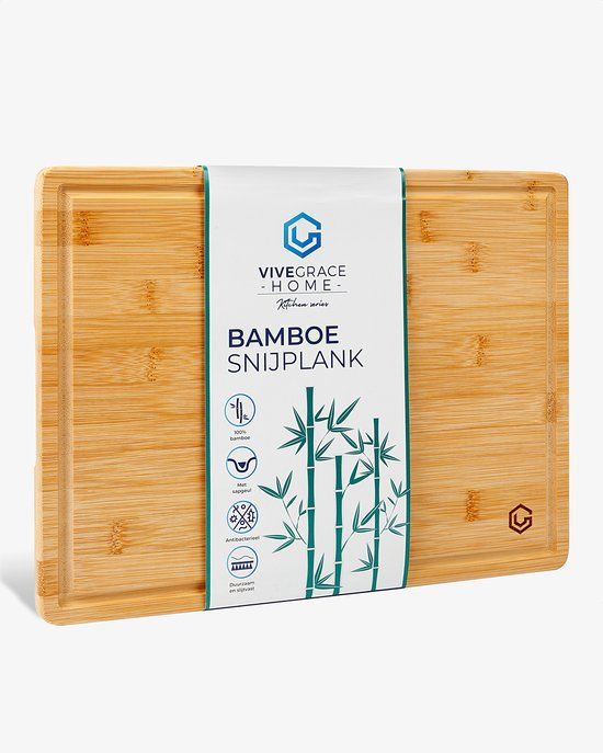 Bekijk productViveGrace HOME Bamboe Snijplank - 40x30 CM - Met Sapgeul - Naturel - Snijplanken