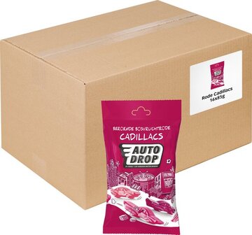 Autodrop Beroemde Bosvruchtrode Cadillacs - 16 x 85g - Snoep