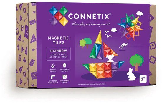 Bekijk productCONNETIX - Magnetisch Tegels - Regenboog Startpakket - 60 Stuks - Sorteer- en stapelspeelgoed