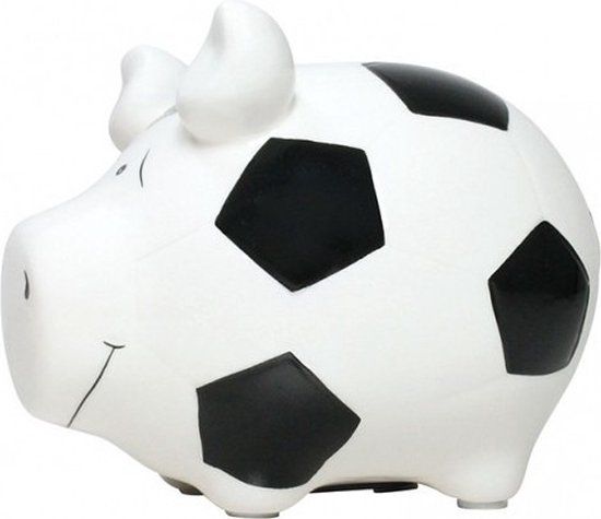 Spaarpot Spaarvarken Wit Voetbal Print 12 cm - Keramiek - Unisex - Spaarvarkens
