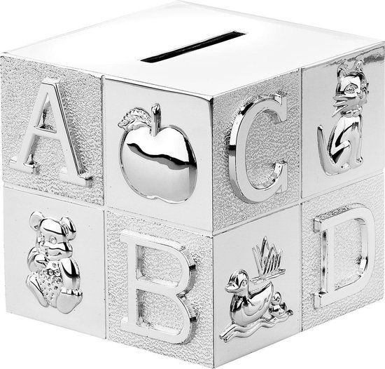 Zilverstad Spaarpot Kubus - Verzilverd - Kraamcadeau - 8x8x8cm