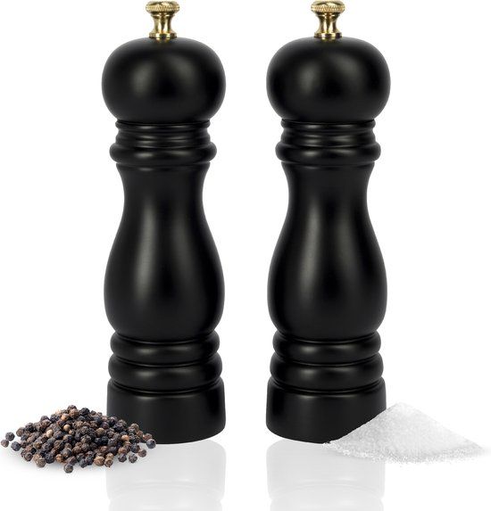 Timmers trading Peper en Zoutmolen Set - Ebbenhout - Zwart & Goud - 20 cm - Specerijmolens