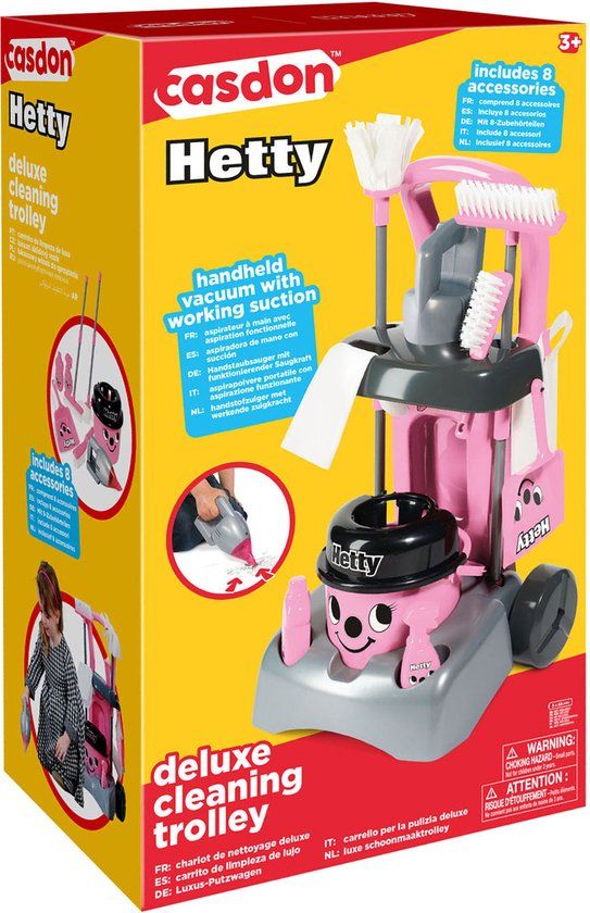 Casdon schoonmaak trolley Hetty deluxe speelset speelgoed schoonmakenMet de Casdon schoonmaak trolley wordt schoonmaken speelgoed ineens een feestje! Deze vrolijke en luxe Hetty schoonmaakwagen is perfect voor kleine poetsliefhebbers die graag het huis helpen opruimen. Met de roze trolley en het bijpassende gereedschap kunnen kinderen zich helemaal uitleven in hun eigen schoonmaakavontuur.Of ze nu doen alsof ze stofzuigen, dweilen of alles netjes op hun plek zetten, met deze set voelen kinderen zich echte hulpen in huis. De stevige kunststof trolley is makkelijk te verplaatsen en biedt ruimte voor alle accessoires, zodat alles netjes opgeborgen blijft. Laat de fantasie de vrije loop en maak van opruimen een leuke activiteit!Extra informatieLuxe schoonmaakwagen met vrolijke Hetty-lookInclusief diverse schoonmaakaccessoiresGemaakt van stevig kunststofStimuleert rollenspel en fantasie.