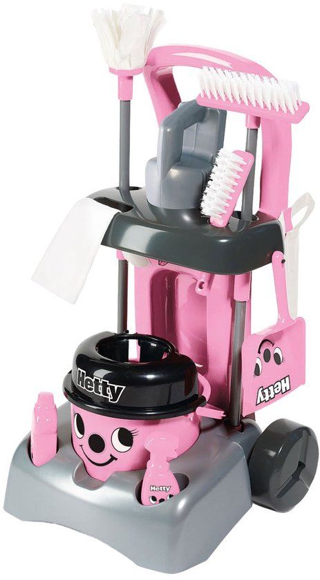 De Casdon Hetty Hoover Deluxe Reinigingswagen is ideaal voor het stimuleren van een fantasierijk rollenspel. Stel je voor dat het reinigen nieuwe hoogten heeft bereikt met deze stijlvolle luxe reinigingswagen van het Hetty-merk. Je kind zal dol zijn op het lachende gezicht van Hetty terwijl ze rondrennen en je helpen op te ruimen. De gesimuleerde dweil wordt geleverd met een stoffen dweil die door een kind kan worden verwijderd en bevestigd met behulp van de traditionele methode met de vingerduwdoek. Inbegrepen in de set is een bezem met lange steel, stoffer en handborstel, gesimuleerde wasmiddelfles en papieren afvalzak.