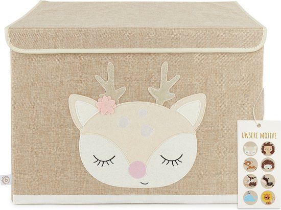 Berg al het favoriete speelgoed van je kindje gemakkelijk op in deze leuke stoffen opbergbox van Bieco! De opbergbox heeft een mooie zand kleur met een schattig hertje erop, hoe leuk! Naast speelgoed is de box natuurlijk ook geschikt voor dekentjes, knuffels, boekjes en ga zo maar door. Opgeruimd staat netjes!